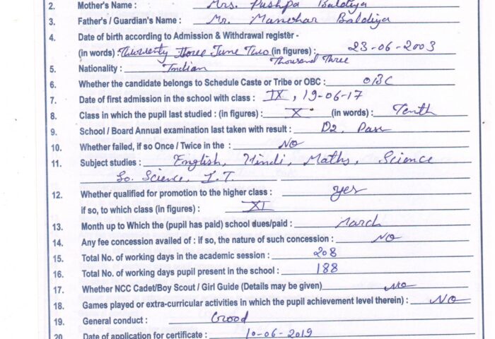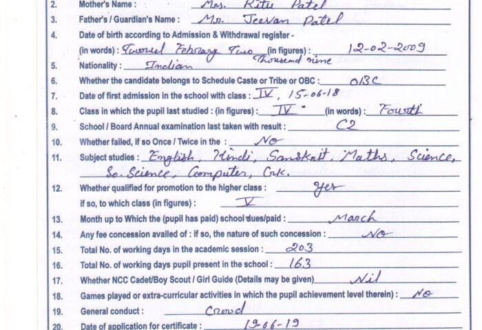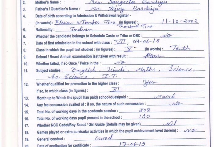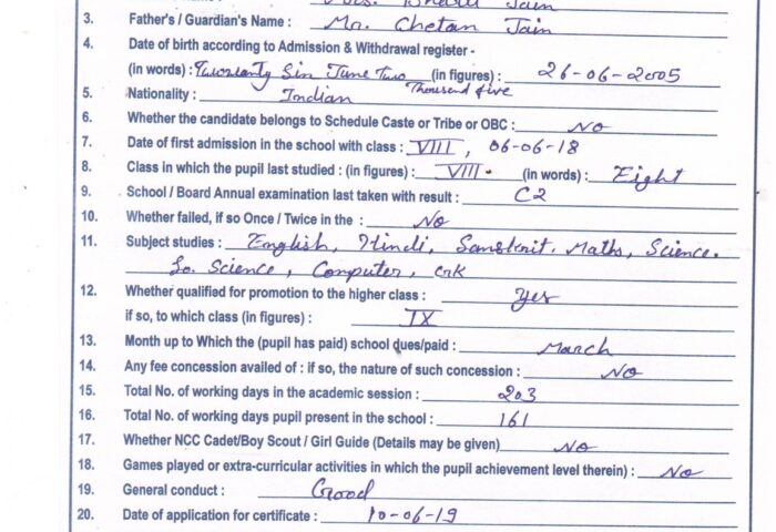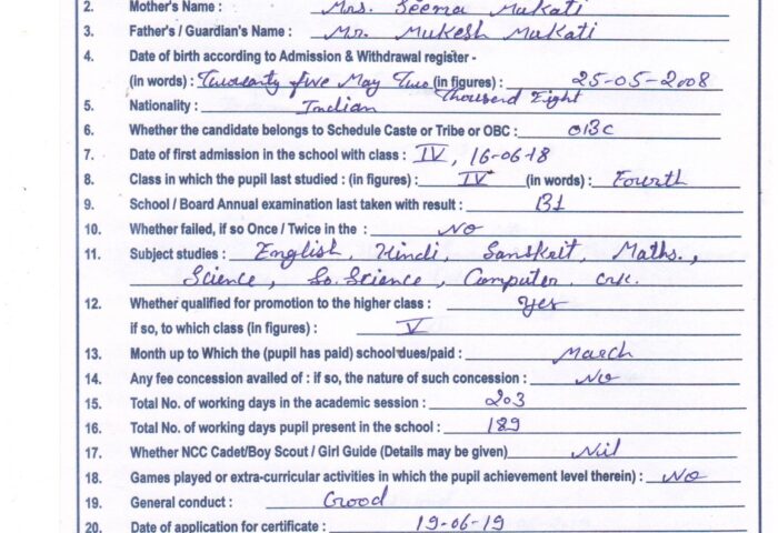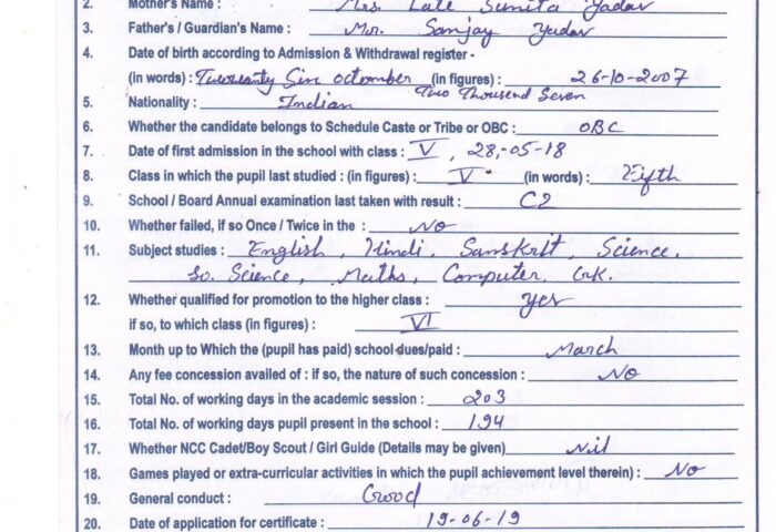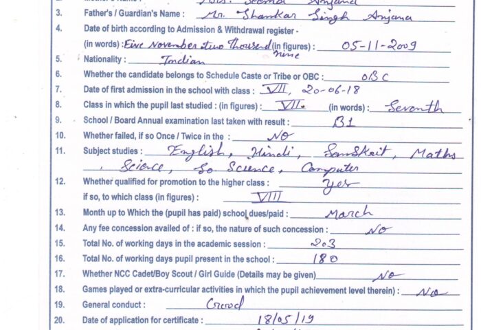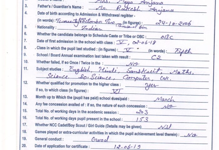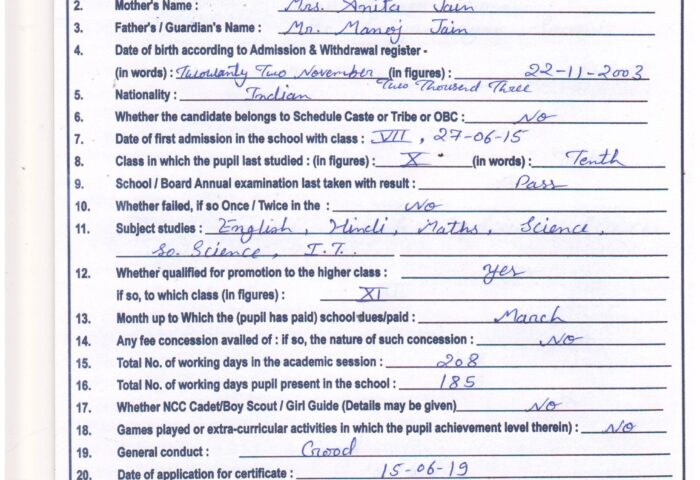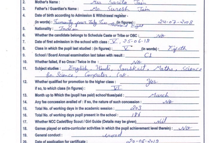 Transfer Certificate