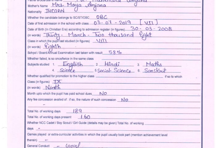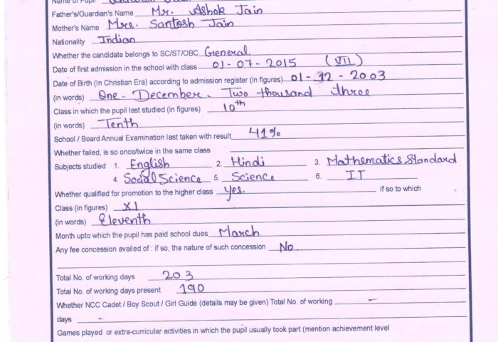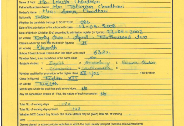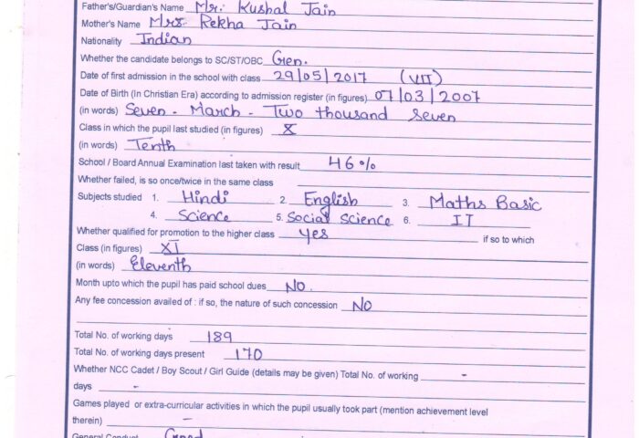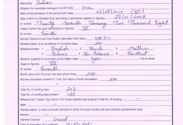 Transfer Certificate
